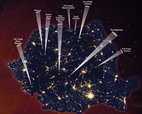 Mai jos este prezentată o hartă cu zonele cu cer întunecat din România și care ar trebui protejate, deoarece ele devin tot mai rare în lume și sunt o sursă de astro-turism.