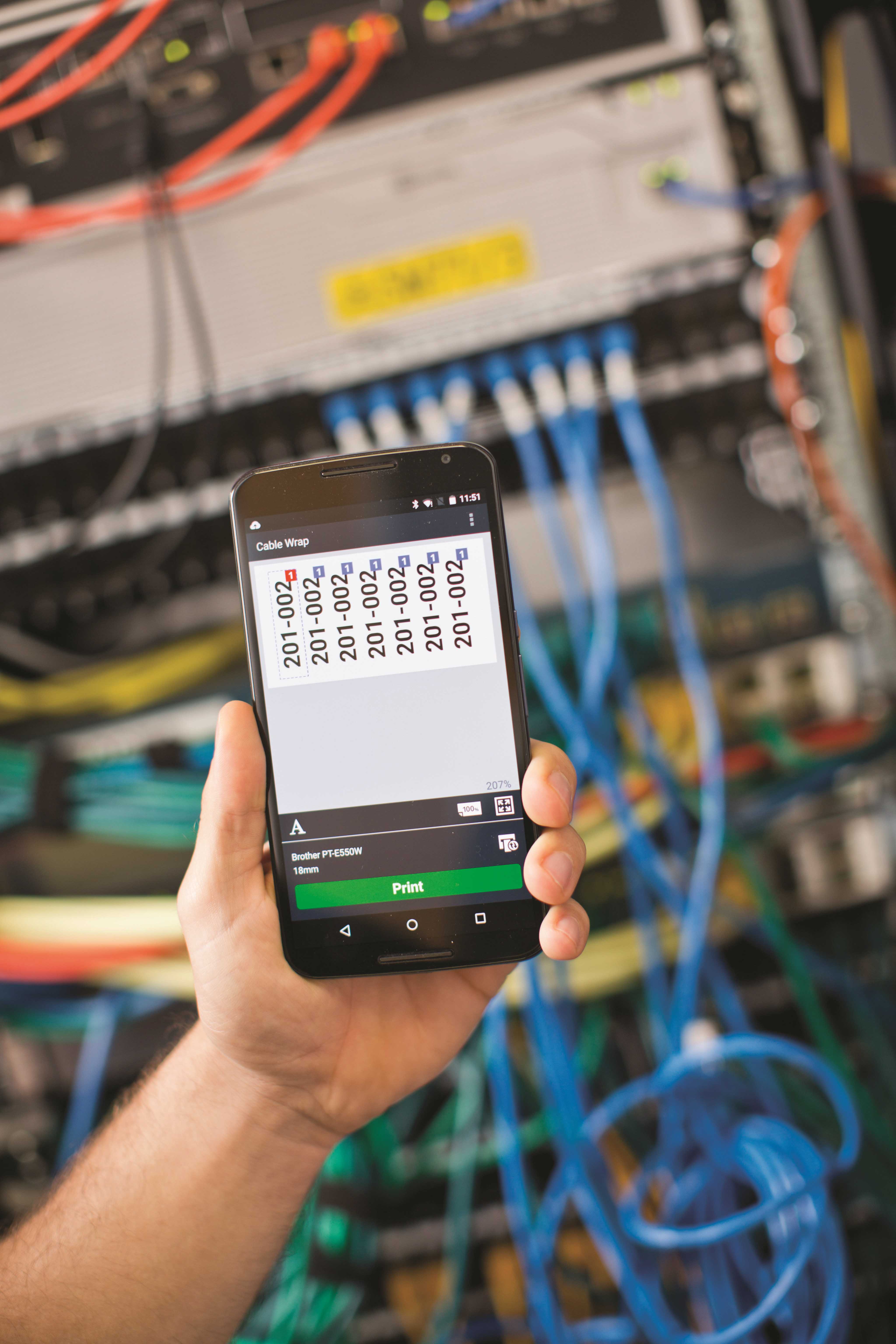 Brother nu s-a oprit însă aici și a introdus și o soluție care să simplifice și mai mult munca tehnicienilor, furnizându-le un instrument care permite crearea și aplicarea etichetelor chiar în momentul instalării fiecărei componente. Este vorba despre aplicația Mobile Cable Label Tool pentru dispozitive mobile. Compatibilă atât cu sistemul de operare Google Android, cât și cu Apple iOS, aceasta permite alegerea șablonului dorit, introducerea textului și tipărirea etichetei pe o imprimantă compatibilă, precum PT-E550WSP, direct de pe smartphone sau tabletă, totul wireless, extrem de simplu și rapid. Iar în ciuda ușurinței în utilizare, Brother Mobile Cable Label Tool pune la dispoziție numeroase șabloane uzuale disponibile pentru cabluri, panouri și echipamente de rețea, înlesnind astfel crearea etichetelor și reducând considerabil riscul de a imprima etichete cu lungimea nepotrivită. Mai mult decât atât, este posibilă și personalizarea etichetelor, prin adăugarea de text, simboluri, imagini, coduri de bare sau chenare, fiind în acest fel soluția perfectă pentru orice tip de lucrare. Cu alte cuvinte, laptopul poate fi eliminat complet din lista de echipamente necesare realizării unei instalații, ceea ce nu numai că simplifică munca echipei din teren, dar reduce considerabil și timpul alocat unei lucrări, căci etichetele pot fi redactate și tipărite chiar la fața locului, fără a mai aștepta ca ele să fie furnizate dintr-o altă locație. Iar ca dovadă a rapidității și simplității caracteristice aplicației Mobile Cable Label Tool, Brother a creat și un scurt clip video pentru documentare, pus la dispoziție pe pagina oficială de prezentare a aplicației: https://www.brother.ro/labelling-machines/network-infrastructure-label-printers/cable-label-tool-app.