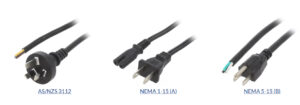 În sortimentul furnizorului nu putea lipsi cablurile realizate conform standardelor Americii de Nord. În acest grup găsim două tipuri de conectori: NEMA 1-15, adică varianta cea mai frecvent întâlnită fără pin de împământare, și NEMA 5-15 care include contactul circuitului de protecție (standard utilizat în principal în mașini de putere mai mare, dispozitive din segmentul electrocasnic). Datorită tensiunii mai mici a rețelei (nominală 125V AC) s-au utilizat aici cabluri capabile să livreze curenți de până la 15A (până la 14 conform AWG).
