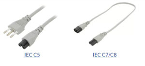 Conectorii C5 (așa-numita trifoi) și C7 (așa-numita opt) sunt cel mai frecvent utilizați în dispozitivele electronice, unde nu există un consum mare de energie. Exemple pot fi dispozitivele RTV staționare (radiouri, televizoare), încărcătoare de laptopuri etc. În plus, în sortimentul furnizorului se regăsesc și cabluri cu conector C8, versiunea feminină a C7, adică priza corespunzătoare pentru acest conector. Aceste cabluri sunt adaptate pentru a servi ca prelungitor pentru conexiunile care utilizează acest tip de conector.