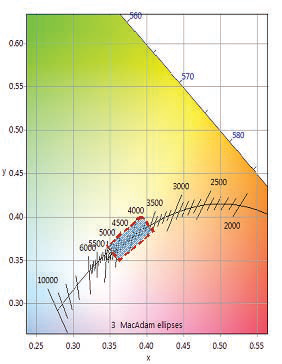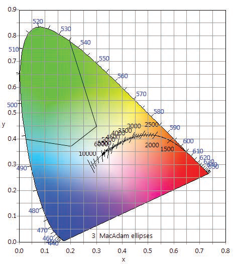La fel și culoarea albă, ale cărei coordonate sunt plasate de-a lungul locului Planckian astfel: