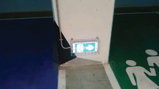 Fig. 2: Exemplu de aplicare a normelor de iluminat de urgenta: corp de iluminat vs indicator de urgenta ( sau NP 127 vs NP061