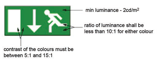 Fig 4: Caracteristicile de luminanță menționate în SR EN 1838 și ISO 3864