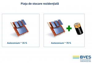 Iată de exemplu efectul estimat de BVES asupra utilizării energiei din surse regenerabile în sectorul rezidențial, din panouri solare fotovoltaice de regulă,  și anume o creștere a asigurării autoconsumului până la circa 70%. Extinderea utilizării energiei regenerabile este posibilă grație  stocării în rezidențial  ceea ce permite și o descongestionare serioasă a rețelelor  de joasă tensiune care sunt solicitate mai puțin de acești consumatori rezidențiali .
