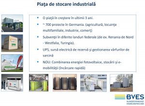În ceea ce privește piața de stocarea industrială, și aici creșterea este importantă în Germania iar  integrarea electromobilității este în măsură  de asemenea să facă și mai interesantă  utilizarea ei.