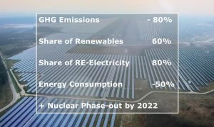 Renunțarea  la energia nucleară până în 2022, reducerea emisiilor de gaze cu efect de seră, extinderea utilizării energiei electrice-un nou val de electrificare, eficientizarea consumului energiei  dar și a transportului și distribuției energiei și bineînțeleles extinderea în continuare a producției de energie din surse regenerabile, cu toate aceste teme majore  se confruntă energetica Germaniei.  Tabelul de mai jos prezintă succint obiectivele ambițioase pe care Germania și le-a propus pentru 2022.