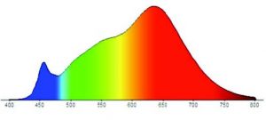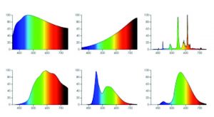 În prezent, cele mai utilizate diode emițătoare de lu mină albă (WLED) sunt cele cu conversie cu fosfor, realizate dintr-un cip InGaN emițător albastru și un fosfor „galben” pe bază de Ce (Ce: YAG) dispersat într-o rășină epoxidică organică sau silicon. Prin urmare, componenta spectrala albastră în domeniul 450-470nm este dominantă în comparație cu celelalte surse emițătoare de lumină (Figura 2).