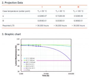 Multitudinea de puncte de date din raportul LM80 sunt însă incorect publicate/preluate de producătorii de corpuri de iluminat ca durată a menținerii fluxului luminos sau a duratei de viață a aparatului (Fig. 3).