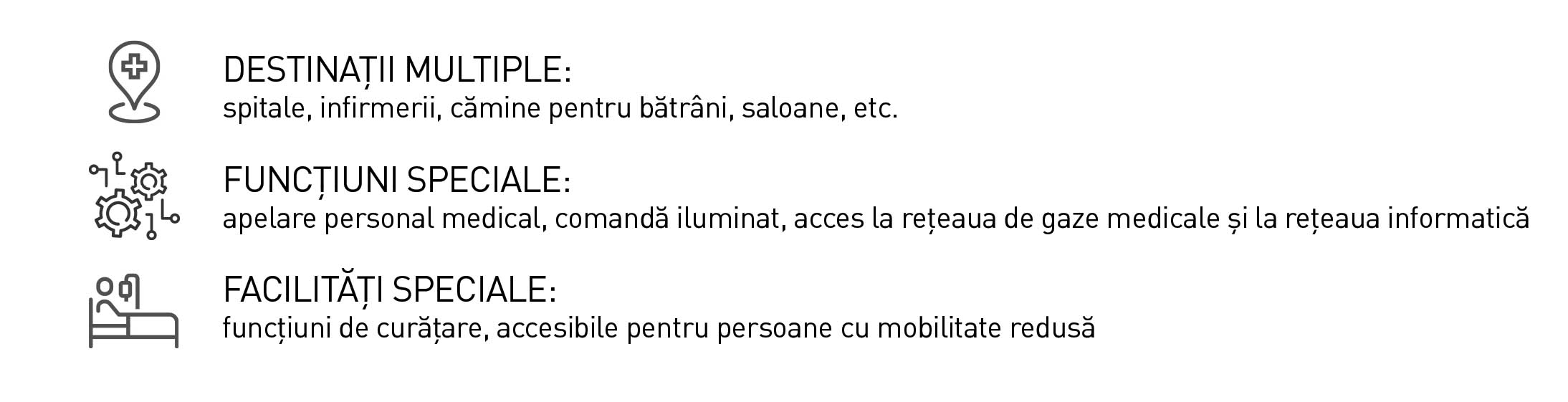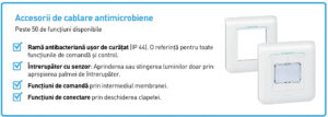 Ideale în special pentru zonele cu destinație medicală (spitale, clinici, cămine, laboratoare), dar și pentru alte spații cu restricții speciale de igienă (bucătării de restaurant), acestea sunt o soluție adițională și eficientă împotriva răspândirii virusurilor și a ciupercilor, fără a interfera cu protocoalele existente de curățare.