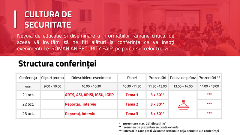 CONFERINTE/EXPOZITII Editii Rubrici Sisteme de securitate STIRI/NOUTATI e-ROMANIAN SECURITY FAIR, 21-23 octombrie 2020 septembrie 2, 2020septembrie 18, 2020 mmihai e-ROMANIAN SECURITY FAIR http://www.arts.org.ro http://www.romaniansecurityfair.eu/ro/ horatiu.marinescu@arts.org.ro Share