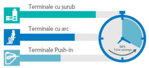 Ușor de folosit – Instalarea fără instrumente a cablurilor solide sau cu pin de capăt