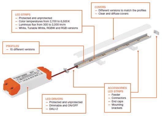 • Ușor de combinat: sistem complet de benzi, drivere, profile și accesorii pentru economisirea timpului.