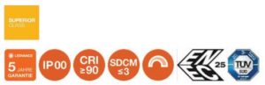 • CRI 90 – indice de redare a culorilor foarte bun, foarte apropiat de spectrul luminii naturale;