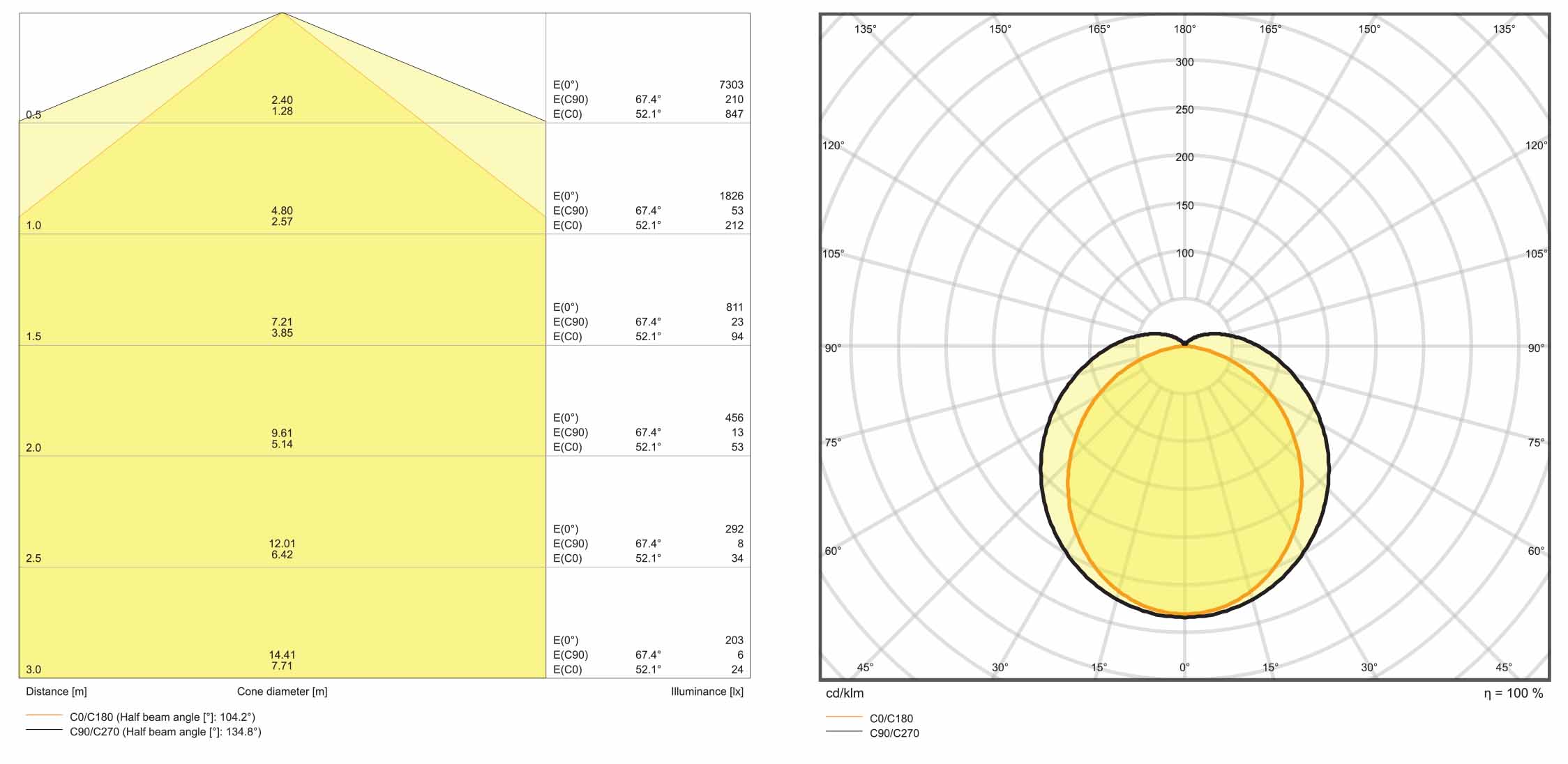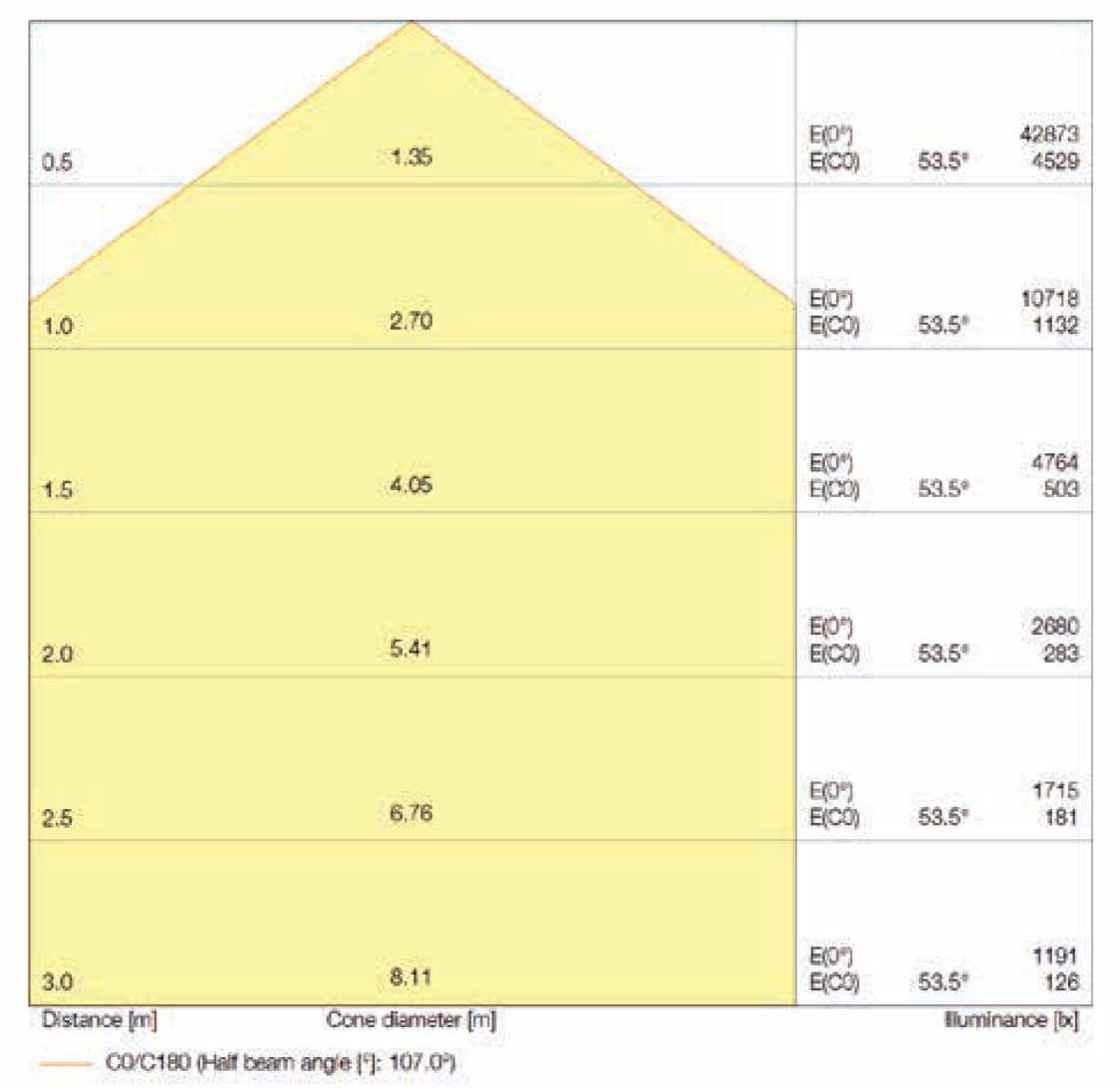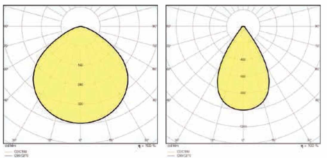 -Unghiul de proiecție al fasciculului de lumină de 1100 asigură o uniformitate bună chiar și la înălțimi mici de montare.