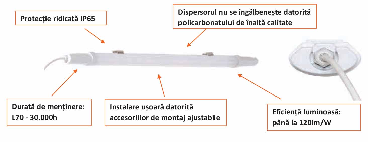 -Economii de energie de minim 50% (în comparație cu aparatele de iluminat care utilizează lămpi fluorescente);