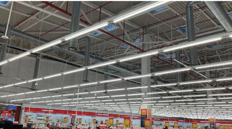 Echipare de sistem de iluminat cu înlocuire directă cu lămpi LED T5 de înaltă performanță. S-au înlocuit cca 500 de tuburi LED T5 direct în aparatajul existent. S-a urmărit și s-a obținut creșterea intensității luminoase medii între rafturi cu cca 30%.