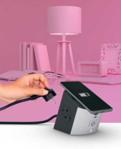 În ceea ce privește blocul multipriză cu clipsare, acesta permite conectarea dispozitivelor cu alimentare permanentă, precum și încărcarea celor mobile fără aglomerarea suprafețelor.