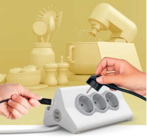 Adori să gătești și să folosești tableta pentru a urmări o rețetă sau să asculți muzică? Blocul multipriză cu stativ pentru tabletă și cel unghiular îți permit să conectezi toate dispozitivele mobile și electrice în timp ce te bucuri de o suprafață de lucru bine organizată.