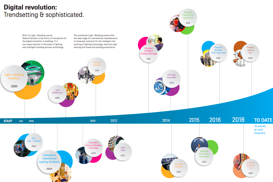 Între 8 și 13 martie anul viitor, Messe Frankfurt va organiza a 21-a ediție a expoziției Light+Building, devenită un adevărat reper pentru industria ingineriei electrice a clădirilor. Pe parcursul existenței sale de două decenii (prima ediție s-a desfășurat în anul 2000) – și pe măsură ce își consolida poziția și devenea neîncăpător pentru toate companiile ce doreau să se prezinte la Frankfurt – Light+Building a fost replicat în cele mai importante regiuni economice ale lumii. În prezent, sub umbrela Light+Building se desfășoară un total de 15 evenimente în mai multe capitale economice de pe toate continentele, făcând din acest târg un proiect global. Cea mai recentă ediție, cea din 2018 a Light+Building desfășurată la Frankfurt a înregistrat 2.719 expozanți și 220.964 de vizitatori. Circa 70% din produsele expuse proveneau din afara Germaniei iar 52% din vizitatori au fost tot din afara Germaniei.