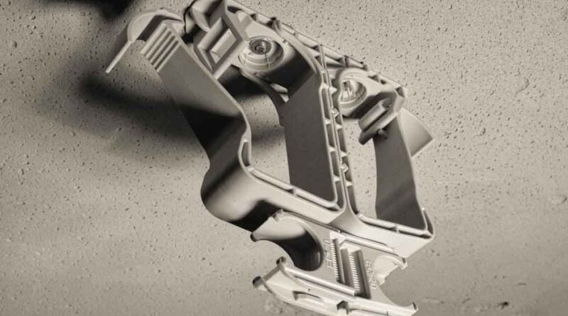 Fotografia 1: Clema dublă de suport SH80 este proiectată pentru susținerea a până la 80 de cabluri NYM 3×1,5 mm² și poate fi extinsă prin cleme de tip EC pentru fixarea tuburilor rigide.