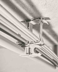 Montarea cablurilor pe tavan se realizează rapid și eficient prin utilizarea clemelor suport SH și SHS, oferind soluții avantajoase pentru orice tip de instalație.