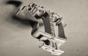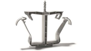 Fotografia 2: Clema suport dublă SH80 în poziția „deschis”. În partea superioară este vizibil diblul de fixare.