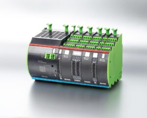Pe lângă aceste măsuri „structurale”, Mico Pro oferă însă o posibilitate mult mai mare din punct de vedere al economiei de spațiu: Sistemul oferă module de distribuire a potențialului, cu ajutorul cărora pot fi conectați mai mulți consumatori cu „Plus și minus“ (+24 V și GND) la un canal de monitorizare. Astfel se elimină din panoul de control distribuțiile 0 V și rândurile de borne necesare, eliberându-se astfel mult spațiu. Consumatorii se conectează direct la canalul respectiv și astfel pot fi alocați cu ușurință.