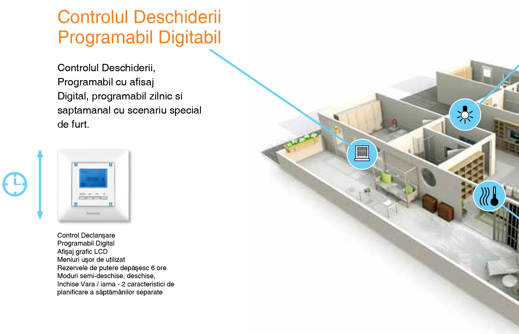Controlul Deschiderii Programabil Digitabil Controlul Deschiderii, programabil cu afișaj digital, programabil zilnic și săptămânal cu scenariu special de furt.