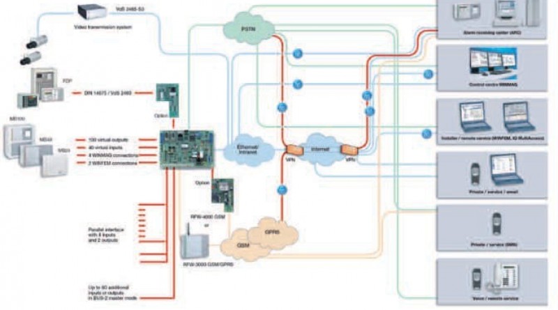 RFW-3000/RFW-4000) drept conexiune on-line catre centrul de monitorizare a alarmelor. Ultimele doua cai de transmisie sunt disponibile ca rezerva pentru situatia in care conexiunea IP se intrerupe, putand fi folosite ca medii de transmisie izolate pentru instalarea cheii VPN.