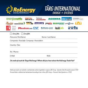 Următoarea ediție a Târgului Internaţional RoEnergy România, Evenimentul Nr. 1 al industriei de Eficienţă Energetică şi Energii Regenerabile din tara noastră, se va desfășura în București, Rectoratul UPB, B-dul Splaiul Indepedenţei, 313, în perioada 9-11 mai 2018.
