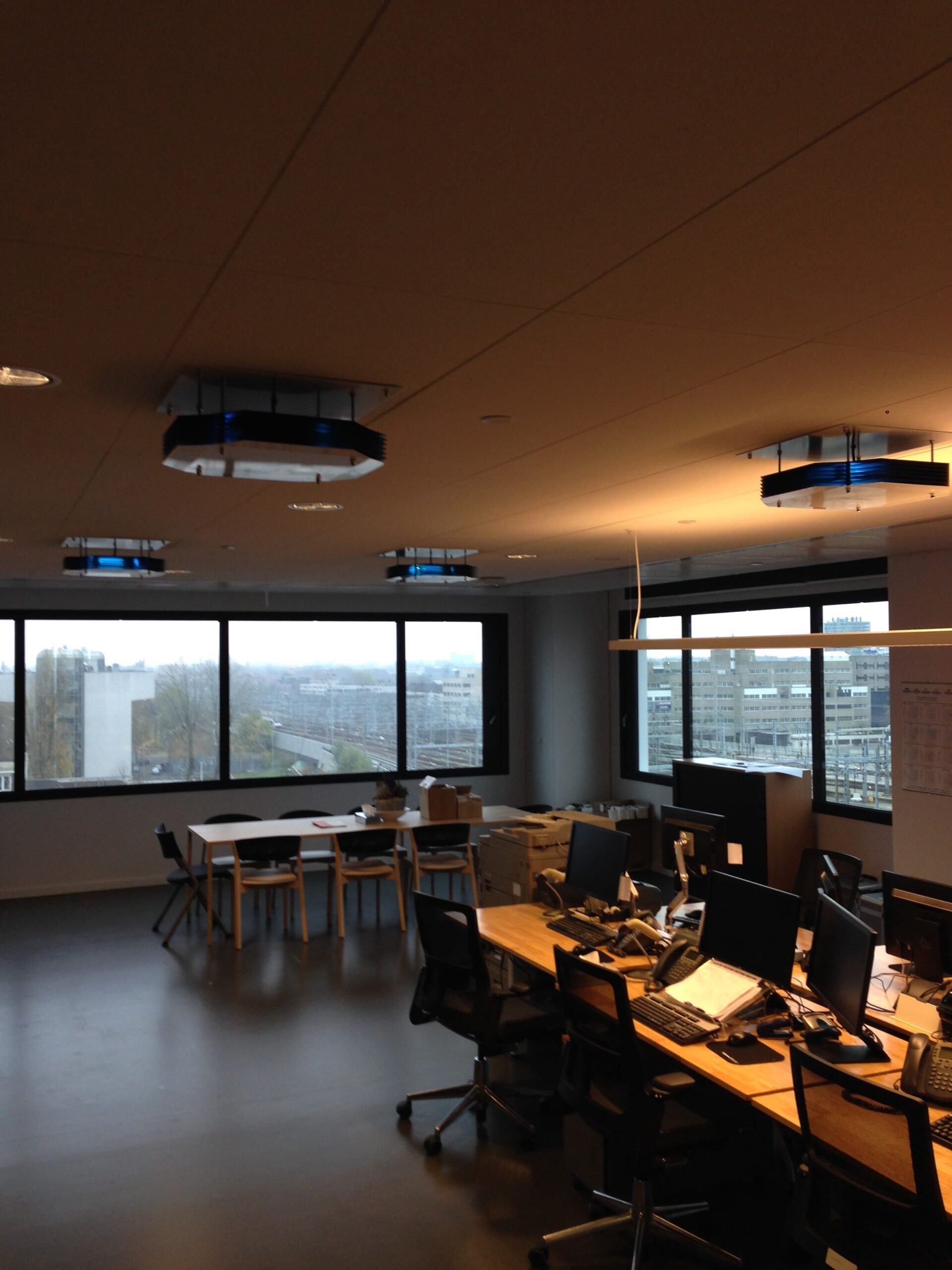 Corpurile de iluminat specializate în dezinfecția aerului pot fi utilizate chiar și atunci când există oameni prezenți în încăpere, fiind echipate cu protecție, cât și instalate la o înălțime care împiedică expunerea la sursa de lumină cu UVC. Datorită circulației naturale, tot aerul din spațiile închise ajunge să fie dezinfectat prin iradierea cu UVC, fiind în felul acesta potrivit pentru utilizarea în școli, birouri, săli de sport, centre comerciale și zone intens circulate.