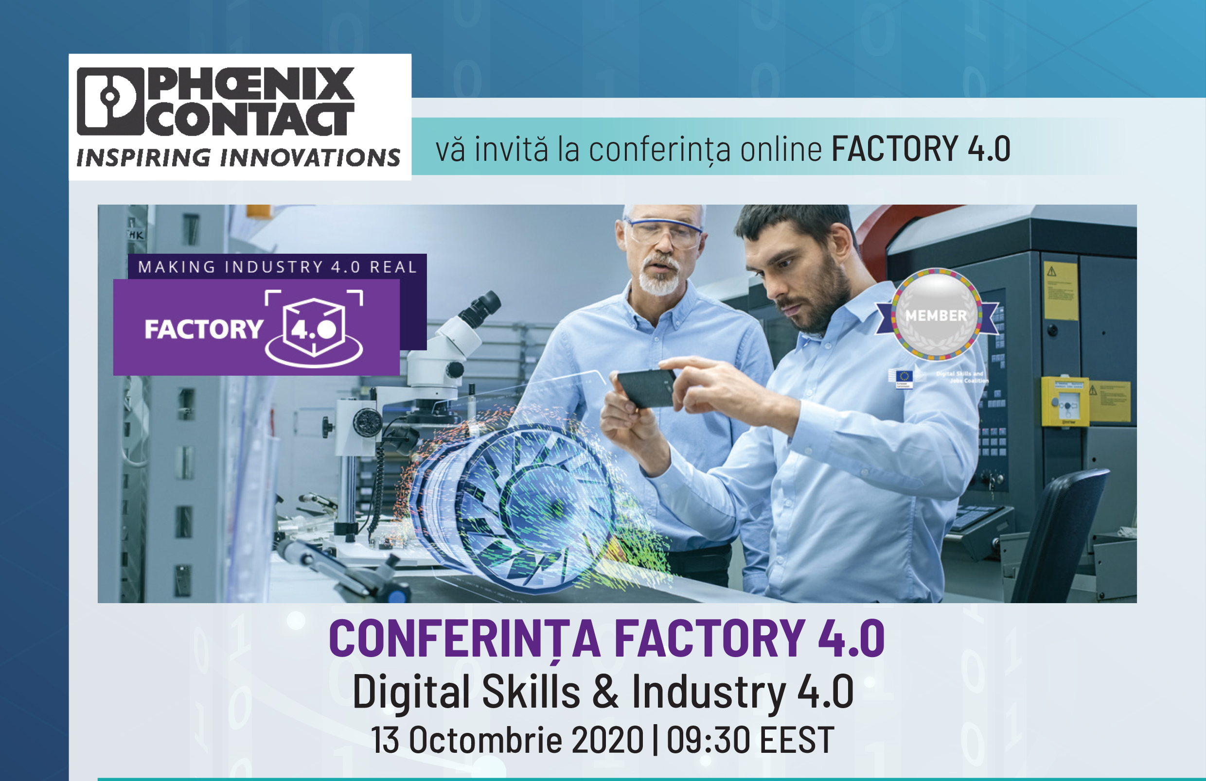 2020-06 CONFERINTE/EXPOZITII Editii Eveniment Rubrici STIRI/NOUTATI Tehnologii PHOENIX CONTACT vă invită la CONFERINȚA FACTORY 4.0 octombrie 6, 2020octombrie 6, 2020 mmihai FACTORY 4.0 Înregistare : https://us02web.zoom.us/webinar/register/WN_4jorqo5SR56kGJ_TTicU-A Read more